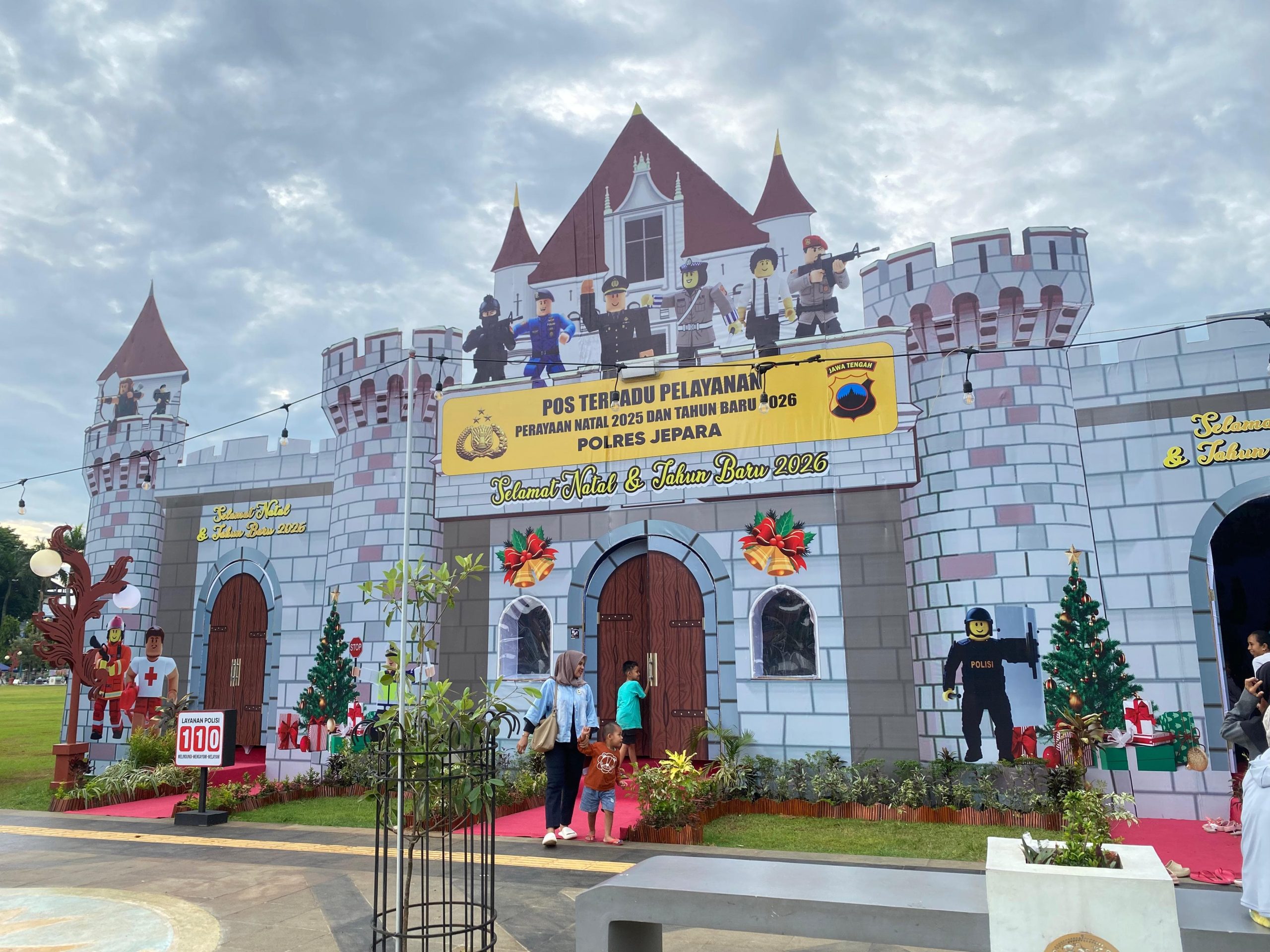 Selain pengamanan, Pos Pengamanan di Alun-alun Jepara juga mengusung konsep ramah anak dengan menghadirkan wahana bermain bertema permainan digital seperti, Roblox, untuk menarik minat anak-anak.