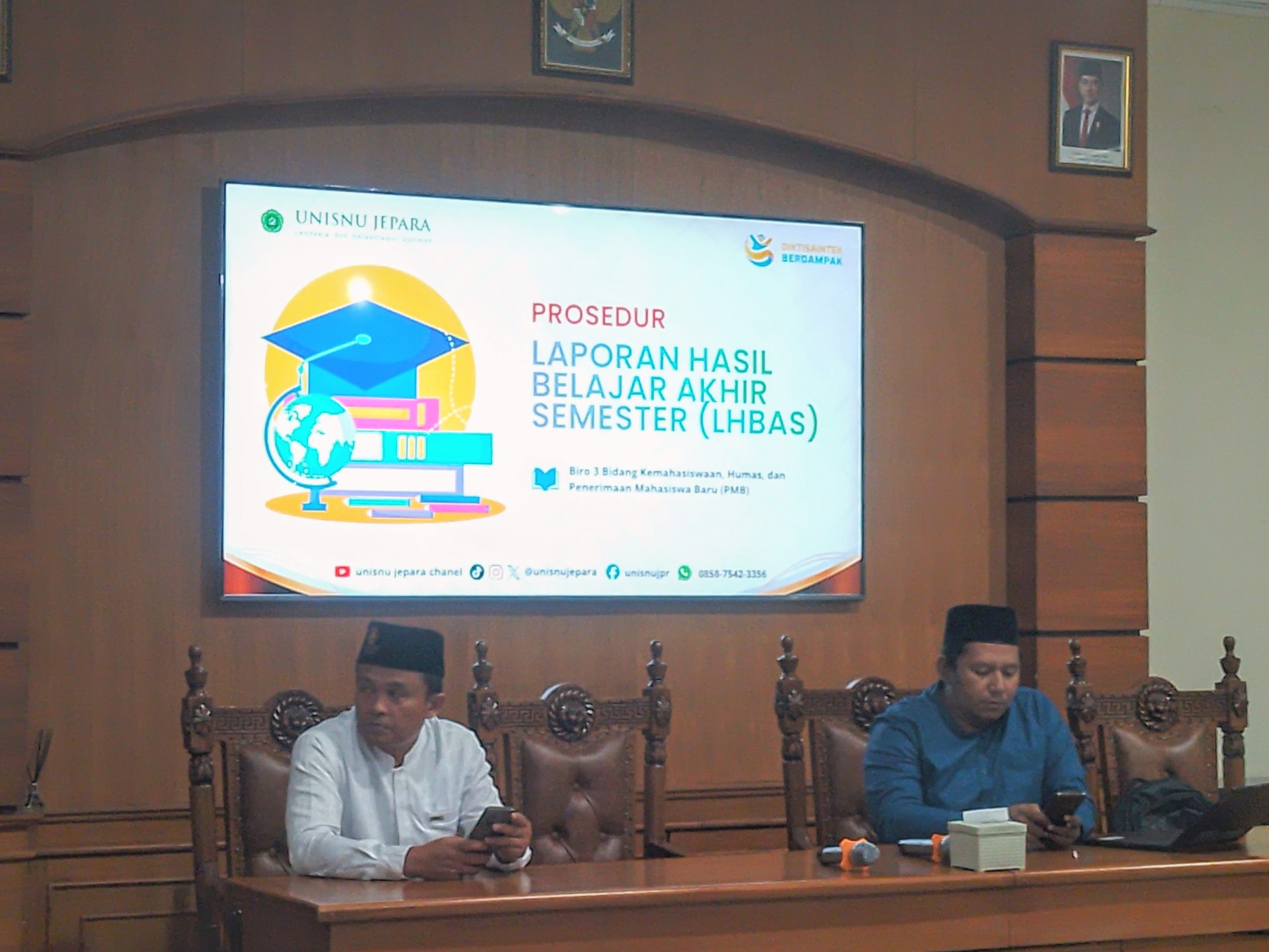 Tahunan,fokuspers.com- Biro 3 Bidang Kemahasiswaan, Humas, dan Penerimaan Mahasiswa Baru (PMB) Unisnu Jepara gelar Sosialisasi Prosedur Laporan Hasil Belajar Akhir Semester (LHBAS) di gedung Pascasarjana lantai 2 pada Jum’at (19/12/25).